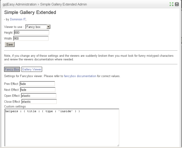 The Simple gallery Extended plugin is meant to allow the normal built in gallery of gpEasy to be enhanced with alternative gallery viewers without any change in the management or setup of the galleries.